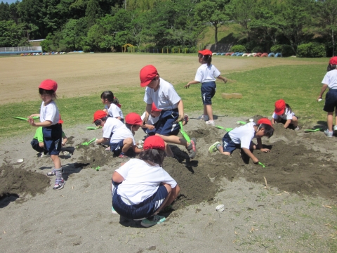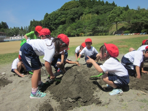 今日は砂場がアトリエ そして 展覧会かいじょうになりました!