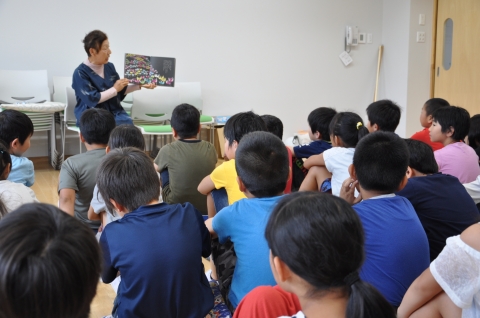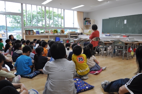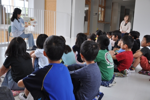 ボランティアの方たち6名が集まってくださり,低学年の子どもたちへの読み聞かせが行われています。