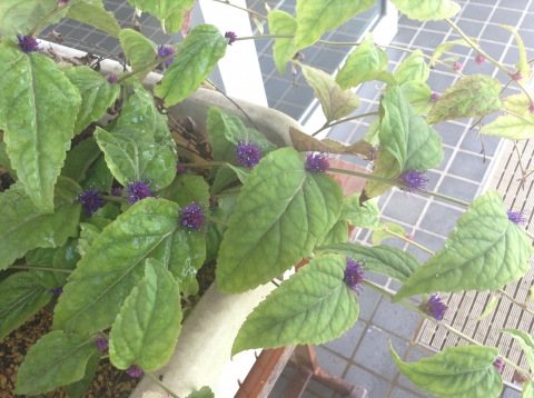 夷隅小の職員玄関前で,イスミスズカケソウが小さな青紫色の花を咲かせています。暑い時期に一生懸命に花をつける頑張りが,本校の子どもたちと重なって見えるようです。