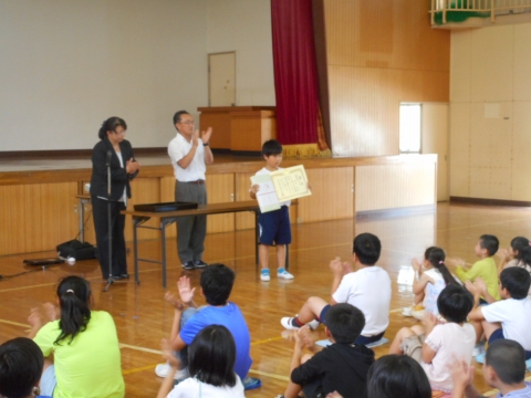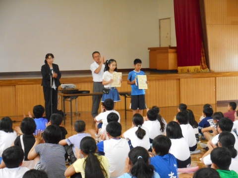登録式終了後、賞状伝達があり、健歯コンクールや県水道週間ポスターで入賞した児童が表彰されました。おめでとうございます!
