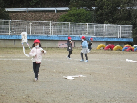 5時間目に校庭でたこあげをしました。実は午前中から,「たこちゃんとあがるかな?」と期待とちょっぴりの心配も。