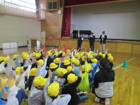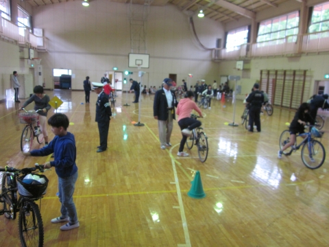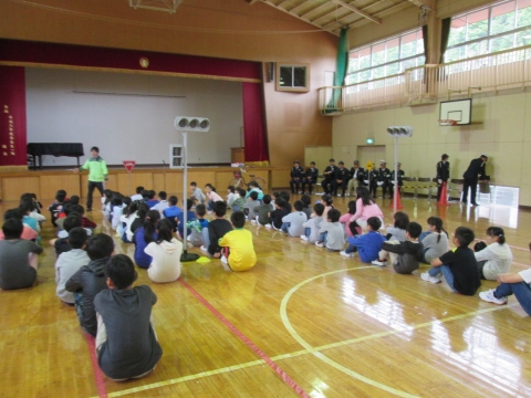 本日は,天候不順により予定されていた交通安全教室は体育館で行われました。