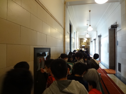 に到着したという連絡がありました。ここでは,館内をグループで見学します。