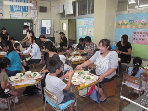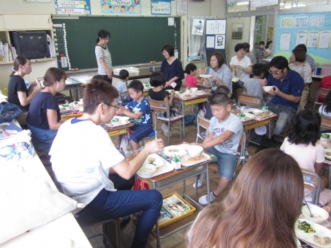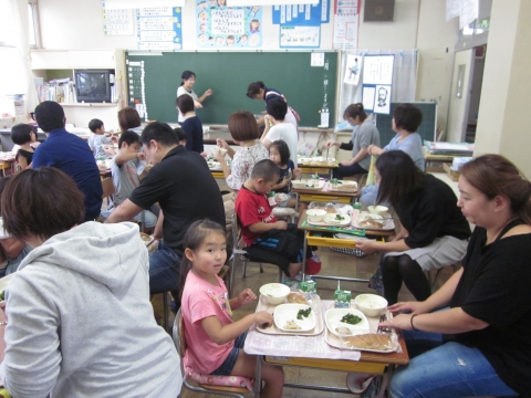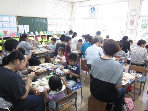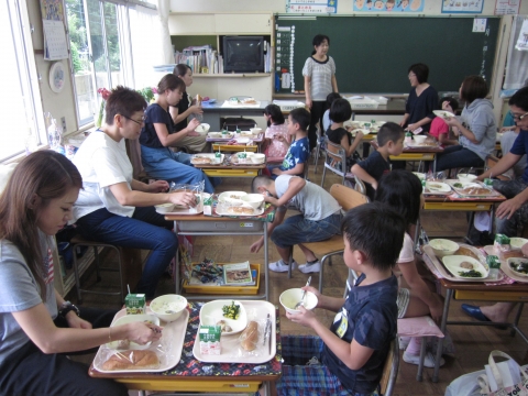 今日は,1年生の親子給食がありました。子どもたちは,おうちの人と一緒に給食を食べるのをとても楽しみにしていました。教室からは,いつもになく楽しい会話が聞こえてきました。保護者の皆様,お忙しい中ご参加いただきありがとうございました。