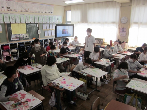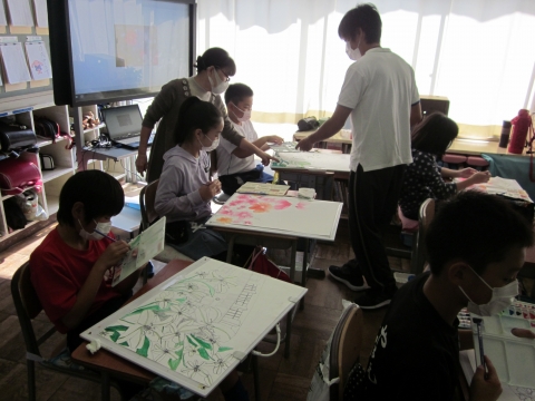 本日 講師の先生をお招きし,こども県展に向けての絵画指導をいただきました。今回は彩色についてが中心となっています。子どもたちは,彩色のポイントをご指導いただくと,目を輝かせて聴き入っていました。子どもたちの皆さん,完成に向けてがんばってください。