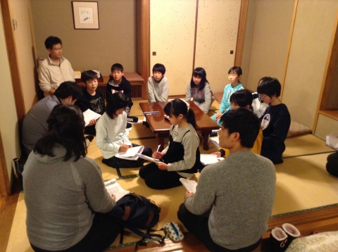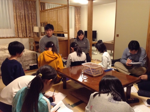 各班のリーダーが集まって、今日のまとめと明日の活動について話し合いをしました。