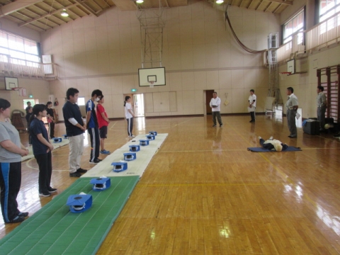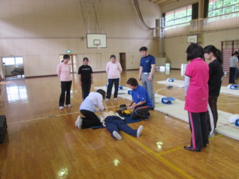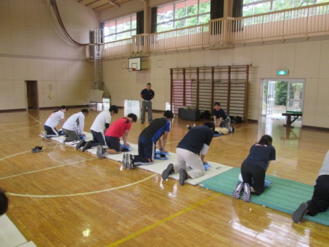 職員研修の一環で,夷隅分署の署員の方を講師に迎え、心肺蘇生法講習会を実施しました。心臓マッサージ・人工呼吸・AEDの使い方・熱中症対策・救急搬送の仕方など、丁寧に指導していただきました。職員一同、水泳学習を前に子どもたちの安全を守る責務の重さを再認識することができました。