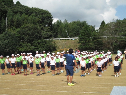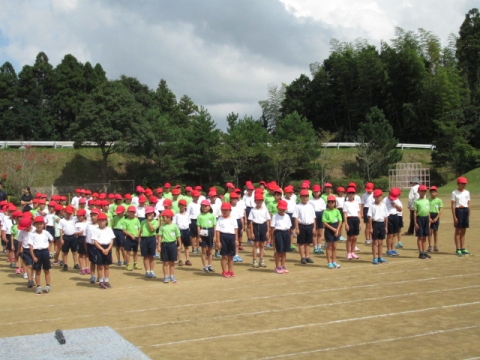 今日から,30日(土)の運動会に向けて練習が始まりました。2校時に低学年,3校時に全体,4校時に中学年の練習がありました。全体練習では,並び方や集団行動の姿勢や基本の動きについて確認しました。初めての1年生も額に汗を輝かせながら頑張っていました。