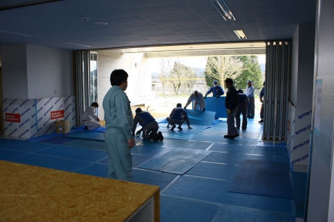10:00から4月からの給食の各階への運搬時間等の確認作業が行われました。