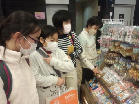 午後4時からは,子どもたちのお楽しみの1つ「買い物タイム」です。バスで越後湯沢駅まで移動し,たくさんおみやげを買いました。スキー教室も2日目が終わろうとしています。楽しい時間は,あっという間に過ぎてしまいますね。