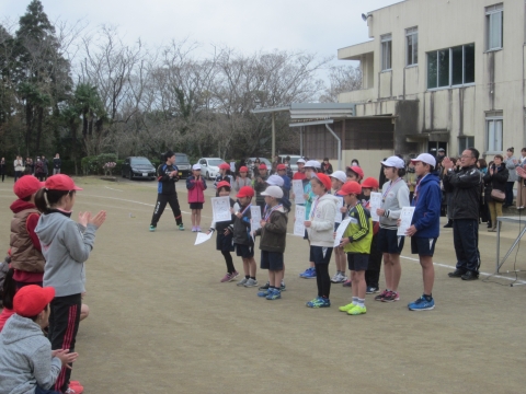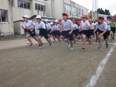 午前9時30分から校内マラソン大会が開催されました。子どもたちは,これまでの練習の成果を発揮して,苦しくても最後まで全力で走り抜くことができました。また,どの学年でも,し烈なトップ争いが繰り広げられ白熱した大会となりました。