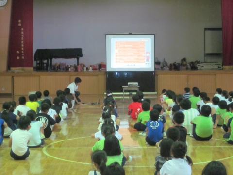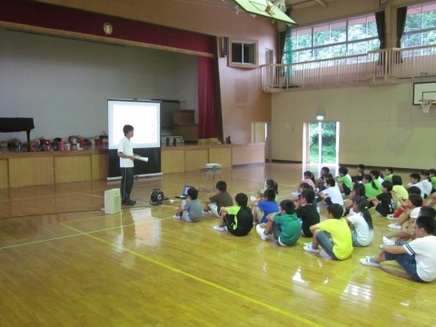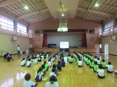放課後,4~6年生を対象として、交通安全教室が開かれました。夏休みを前に、安全主任から指導があり、自転車の乗り方や交通ルールなどを再確認しました。
