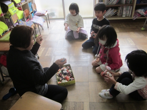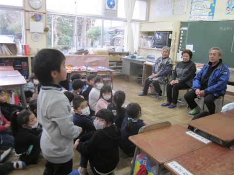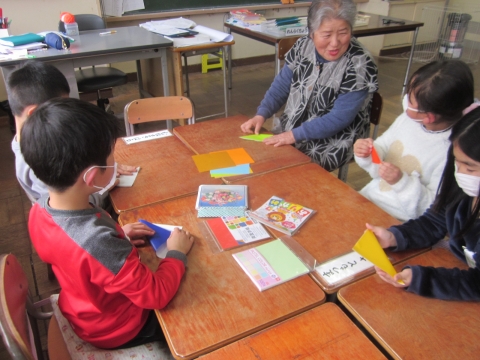 5時間目に,地域の方をお招きして,1年生の昔遊び体験を行いました。1年生の楽しそうな声が,教室から響いていました。笑顔いっぱいの昔遊び体験となりました。
