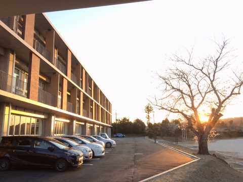 陽がずいぶんと伸びてきました。夕暮れや日が沈んだあとの新校舎もすてきです。
