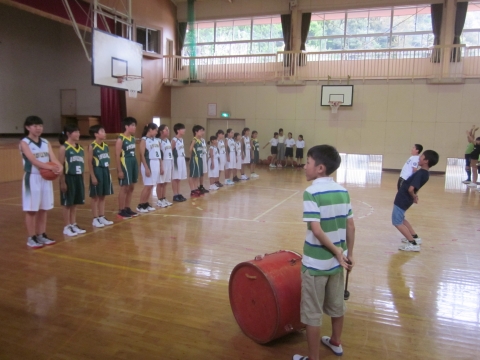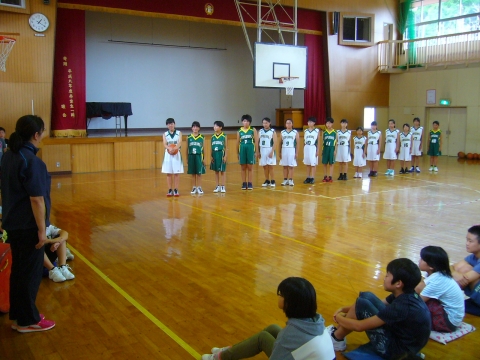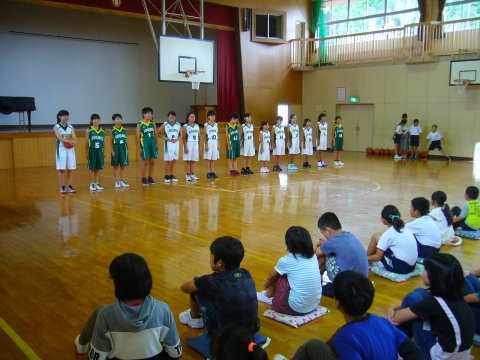 10月5日の二地区ミニバスケットボール大会に向けて,選手壮行会が行われました。