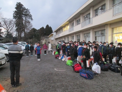 5年生の子どもたちを乗せた2台のバスが夷隅小に帰ってきました。子どもたちは大きな荷物とお土産を抱えながら,たくさんの思い出とともに,元気な姿を見せてくれました。バスから降りたあとは,保護者の皆さんに見守られながら,到着式が行われました。式の進行・代表のあいさつ・話を聞く態度など,3日間でまた一回り成長した子どもたちの姿を感じとることができました。 保護者の皆様,スキー教室前の準備やお子様の健康管理,また送迎など,いろいろとご協力いただきましてありがとうございました。お陰様で,有意義な2泊3日のスキー教室となりました。※スキー教室の様子は,メニューの行事アルバムでもご覧いただけます。