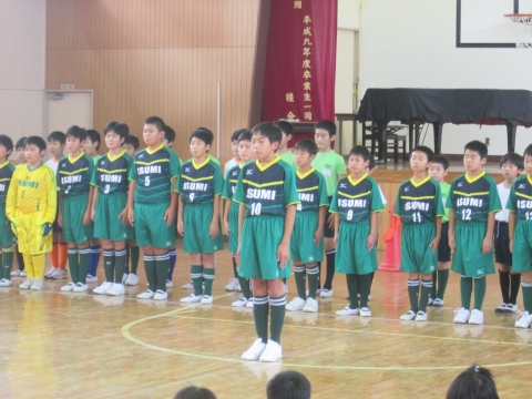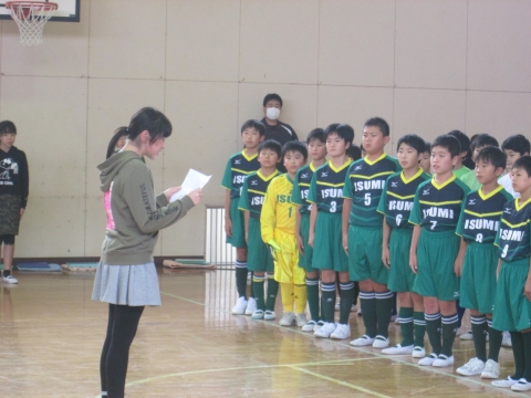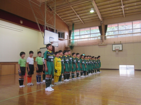 明日本校をメイン会場として開催される2地区サッカー大会に向けて,昼休みに壮行会がありました。新しいユニフォームを着て,気合の入った選手たち。大きな声で堂々と自己紹介や大会への豊富を発表する姿に,成長を感じることができました。明日は,全校の応援を背に,これまでの練習の成果を発揮してください。