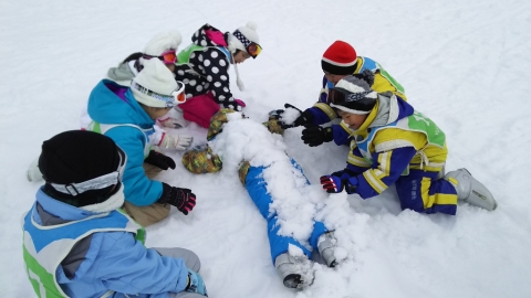 子どもたちは嬉しそうに雪にふれています。