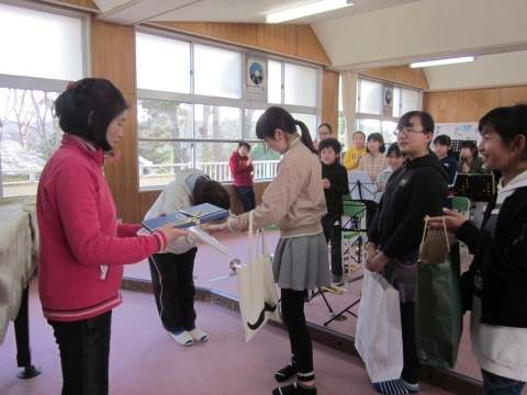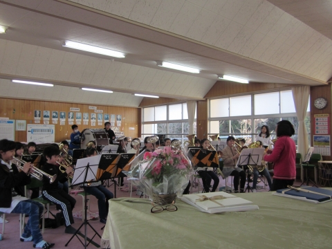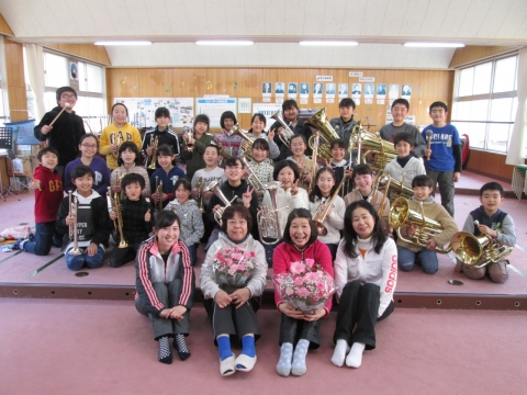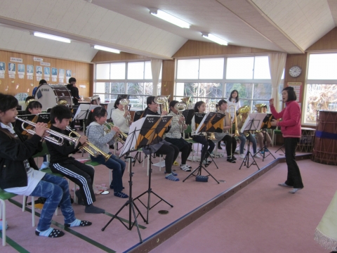 今年度の部活動は,今日が最終日です。金管部では,お世話になった先生方を囲んで最後の練習に励んでいました。