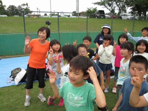 岬町のグラウンドでは,見慣れたあの人が! 細かすぎる解説が大好評 増田明美さんです。増田さんもいすみ市出身。かわいい後輩たちに特別レッスンをしてくださいました!