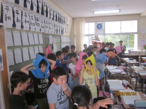 9月の第1週は防災週間です。夷隅小でも地震想定の避難訓練が行われました。