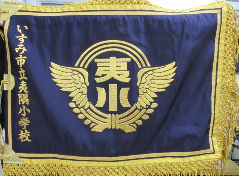 また,夕方教育委員会から夷隅小学校の校旗が届けられました。3月15日の第1回卒業式でのお披露目となります。純金の糸で校章が刺繍された立派な校旗です。