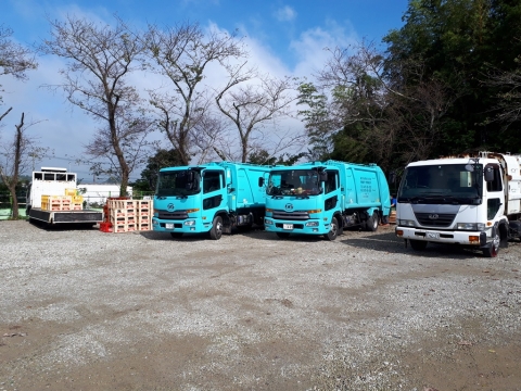 正門入って左側の砂利駐車場内にリサイクルステーションを設置しております。