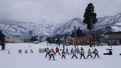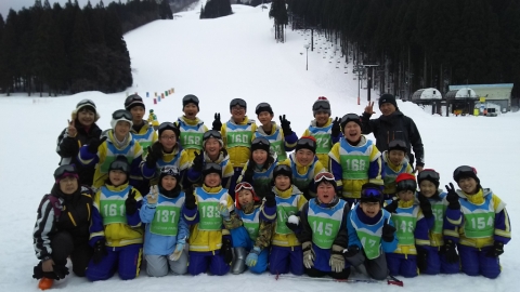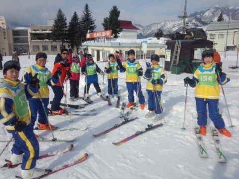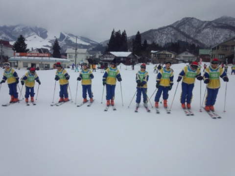 午前9時30分,2日目のスキーレッスンを前にクラスごとの集合写真を撮りました。みんないい笑顔をしています。