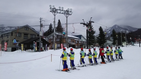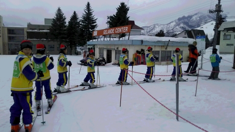 グループごとのスキー教室がスタートしました。リフトに乗り高いところに移動するグループもあるようです。インストラクターさんの話を聞いて,基本をしっかり身につけられるといいですね。