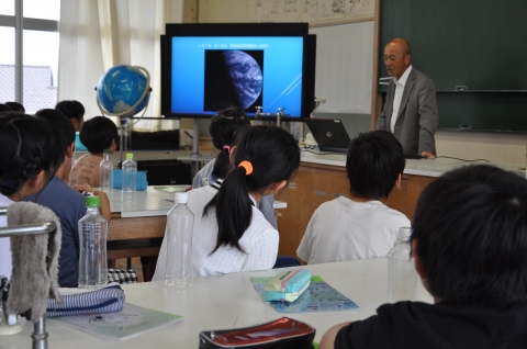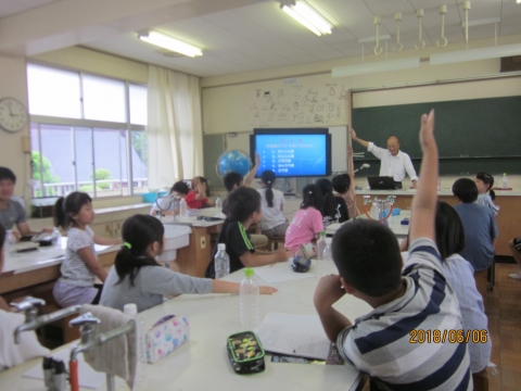 5年生は,理科で気象の学習をしました。さらに学習を深める意味で,気象予報士の石井賢次先生に年2回の授業をしていただいています。