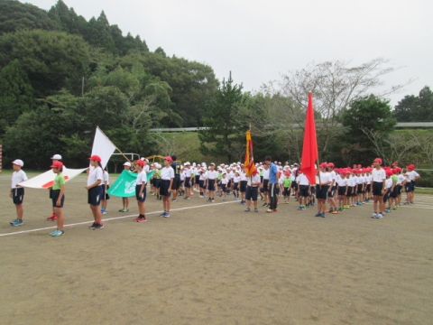 本日の運動会練習です。天気が少し心配されましたが,運動場で行うことができました。
