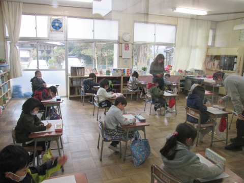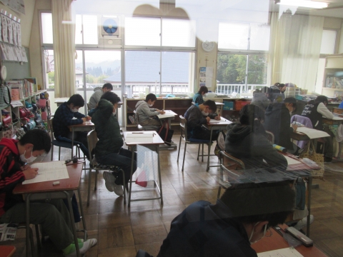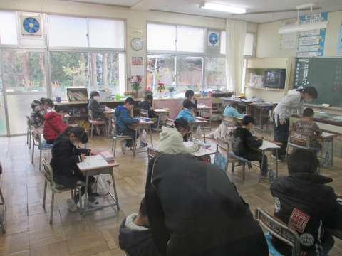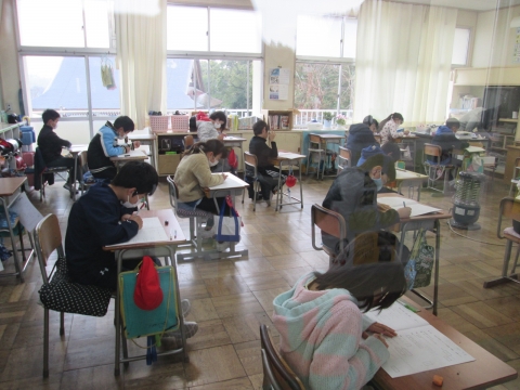 昨日に引き続き今日も学力検査が実施されました。2日目の今日は,全学年の算数と3年生以上の社会科の検査がありました。子どもたちは静かに集中して取り組んでいました。結果については,3月の上旬にお知らせする予定です。