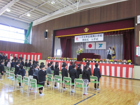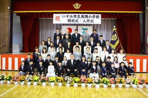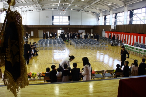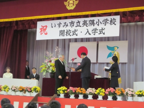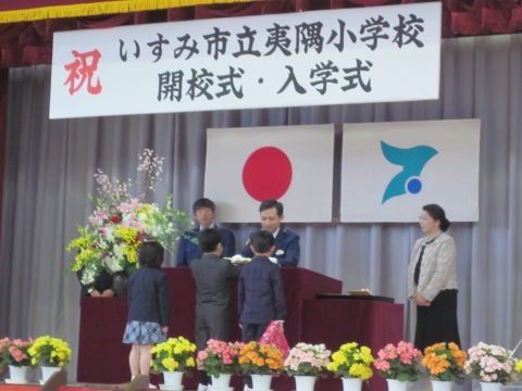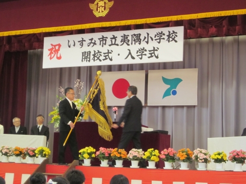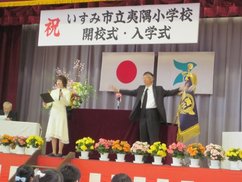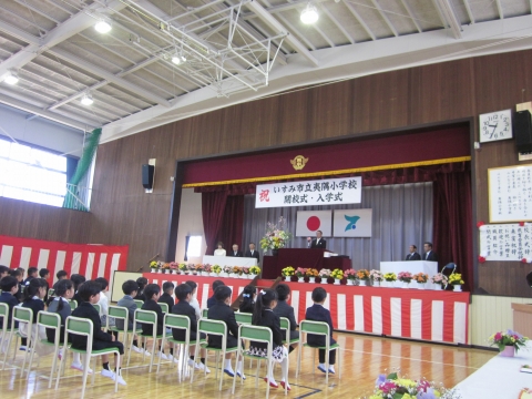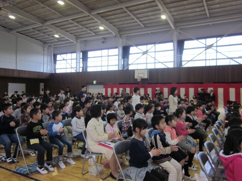 本統合・新校舎移転のため,入学式の前に校歌や校章をつくってくださった方もお招きした開校式が行われました。