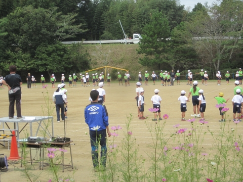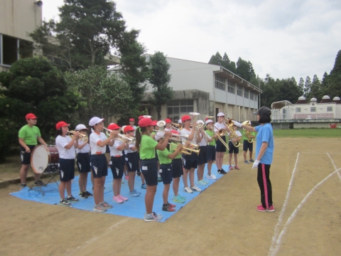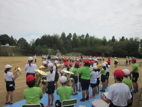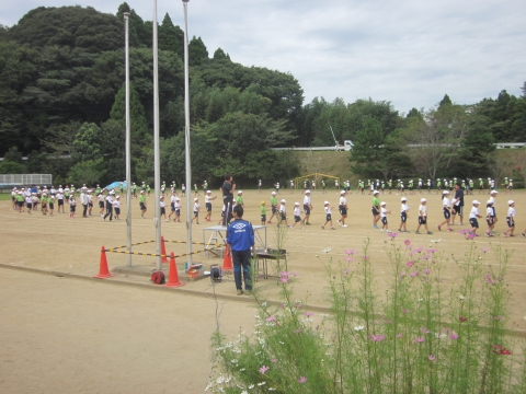 今日も3,4校時に運動会の全体練習があり,入場行進やいすみふれあい音頭の練習をしました。 入場は金管部の演奏に合わせて行進します。
