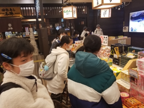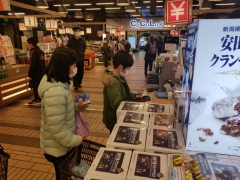 越後湯沢駅がんぎどおりにておみやげを買っています。