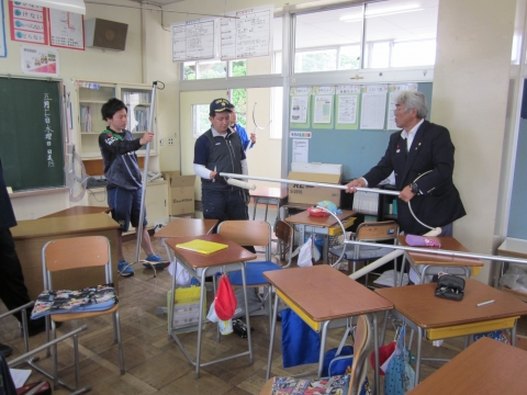 5時間目にいすみ警察署の署員の方々を講師に迎え、不審者侵入を想定した避難訓練と防犯教室が行われました。
