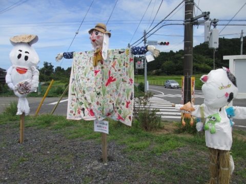 夏休み前 5年生の子どもたち44名が取り組んだかかし作り。