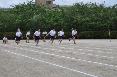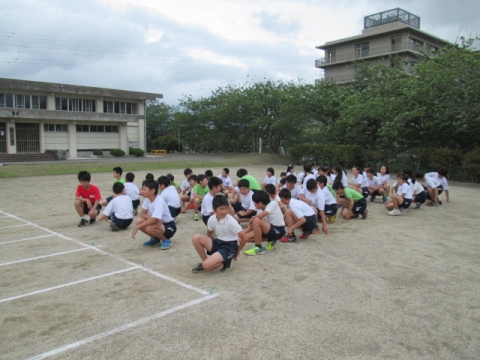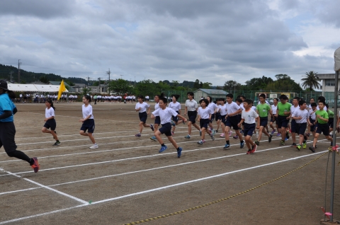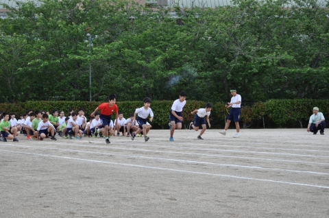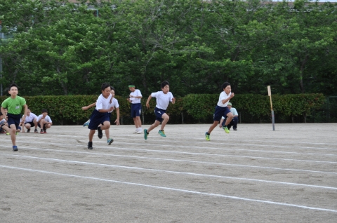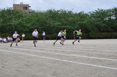 陸上競技部の前日練習の後は、6年生は国吉中学校で行われた体育祭に参加してきました。