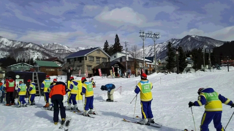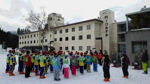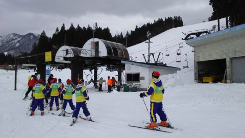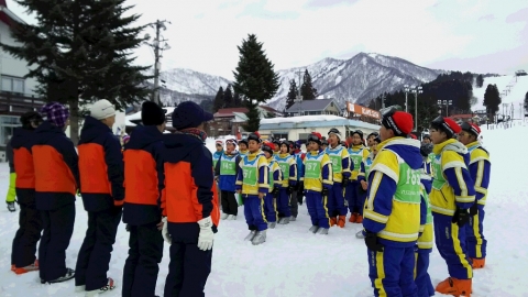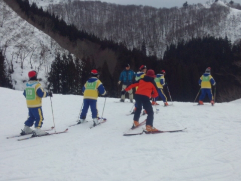 午後1時,スキーレッスンの午後の部が始まりました。インストラクターさんの指導を受けられるのもあと2時間です。しっかり練習しましょう。