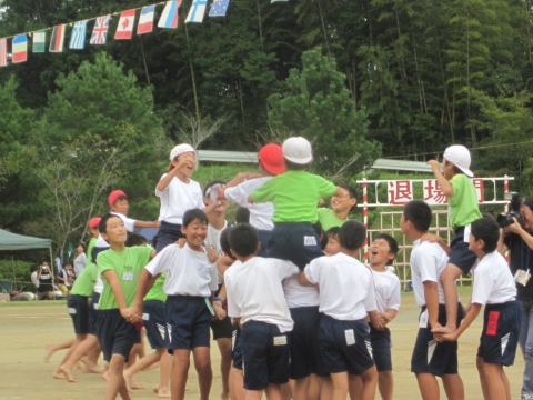 午後の部のスタートは,応援合戦です。赤団・白団とも団長を中心として一致団結し,熱の入った応援が繰り広げられました。その後も工夫を凝らした競技が続き,あっという間に楽しい時間が過ぎていき,その結果,赤団が見事に優勝を果たしました。「汗あり,涙あり,最後は笑顔の夷隅っ子」のテーマにふさわしい素晴らしい運動会になりました。保護者の皆様,地域の皆様,ご支援・ご協力ありがとうございました。