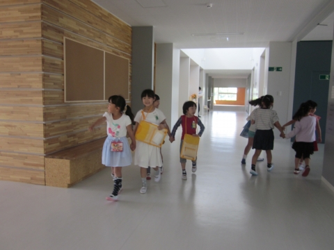 2年生の生活科「2年生になったよ」の学習で1年生とペアを組み,学校案内を行いました。1年生と手をつなぎ,楽しく校内をまわりました。また,1年生と一緒に歌ったりゲームをしたりしました。1年生から「とても楽しかった」という声を聞き,2年生は満面の笑みでした。