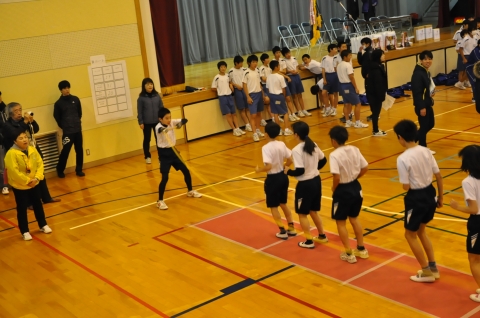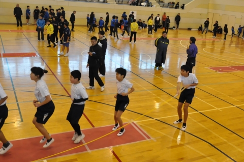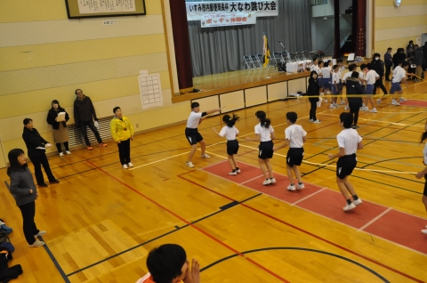 冬休みに入ったばかりの日曜日,郵便局主催の「第6回 大縄跳び大会」が国吉中学校体育館で行われ,夷隅小からも6年生が2チーム参加しました。