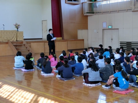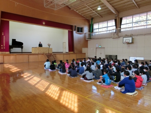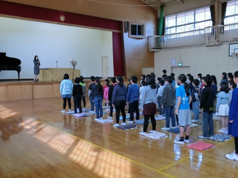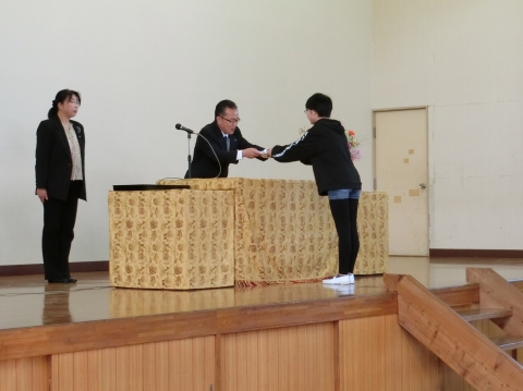 8:40から今年度の修了式を行いました。卒業式での経験をへて逞しくなった在校生は,4月からの自分をイメージして力強い目をしていました。5年生が全校の代表として修了証(通知表)を授与されました。