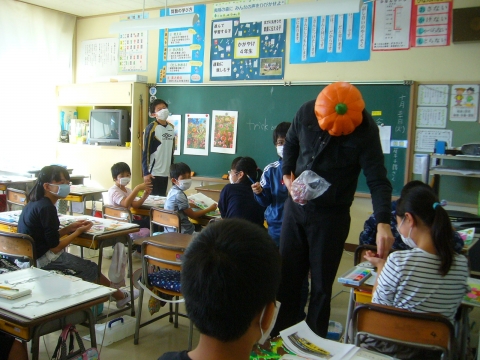 ハロウィンにちなみ,本校にパンプキンキングがあらわれました!