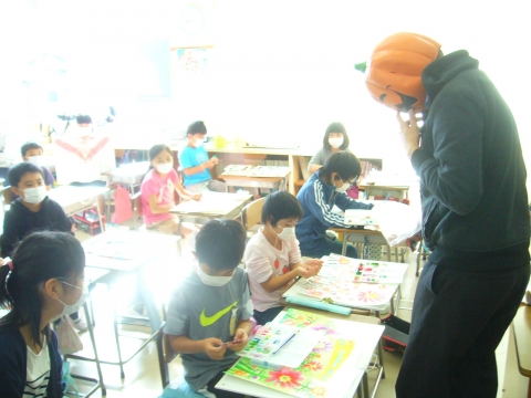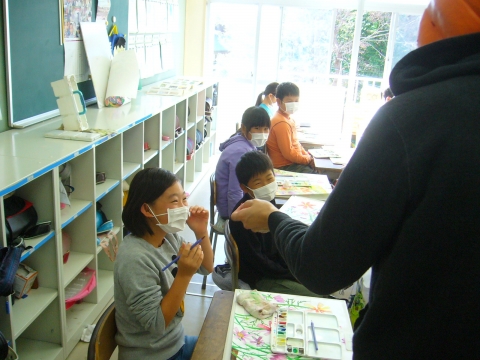 みんなはじめは驚いていましたが,すぐに笑顔に。ALTの先生ありがとうございました!