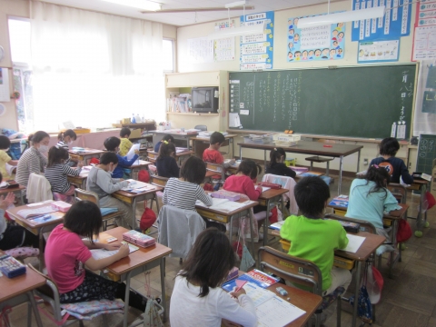 今日は1・2年生の担任の先生が音楽発表会のために不在です。しかし,そんなときだからこそ,子どもたちはいつも以上にしっかりとがんばっています。とってもえらいです。