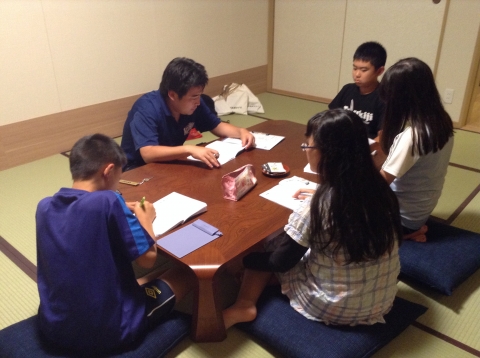 その後、先生と各部屋の代表が今日の反省と明日の予定を確認しています。