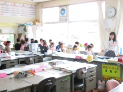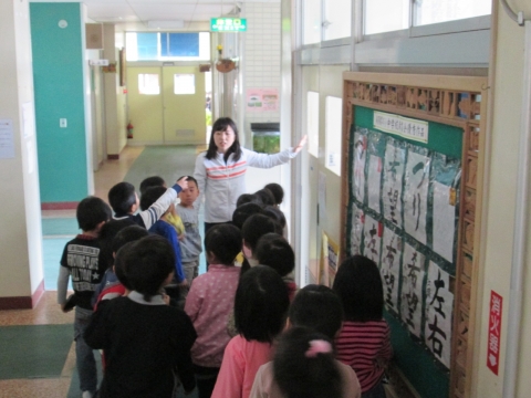 入学した1年生の皆さん。今日は初めて2階に行ってみたり,職員室の入り方も先生から教わったりしました。毎日がドキドキわくわくですね。