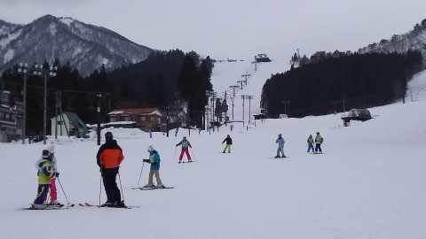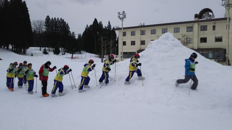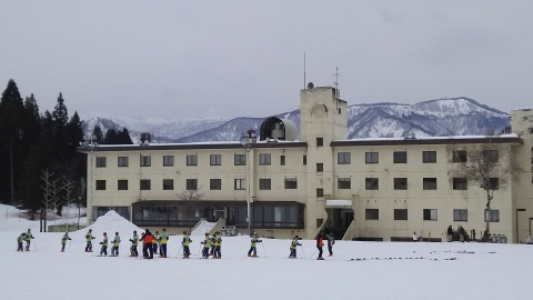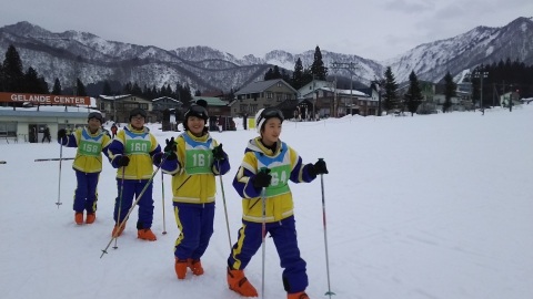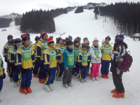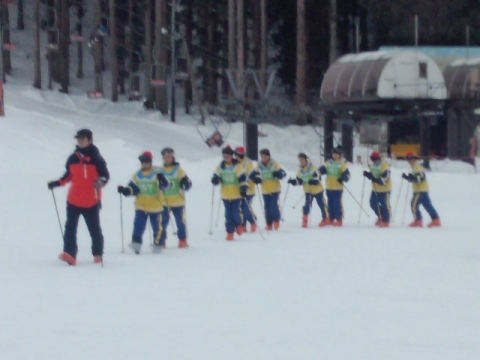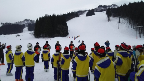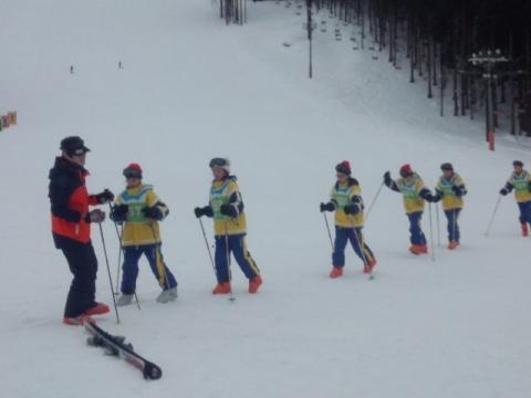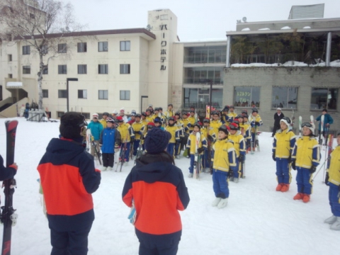 午後1時30分,開校式を終えて,いよいよスキー教室のスタートです。5つのグループに分かれて,インストラクターさんの指導を受けます。どのグループも元気よくゲレンデに飛び出していきました。