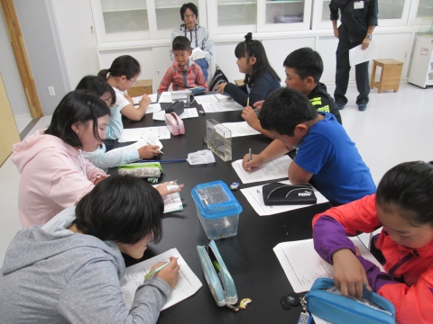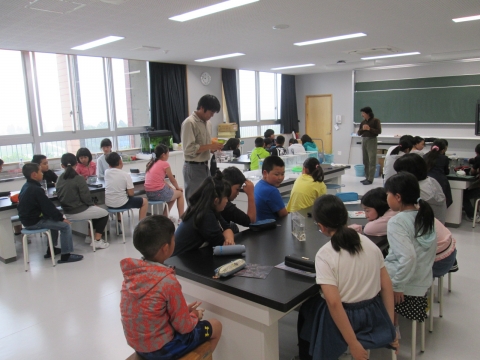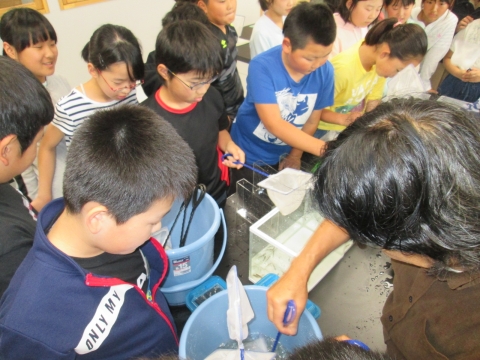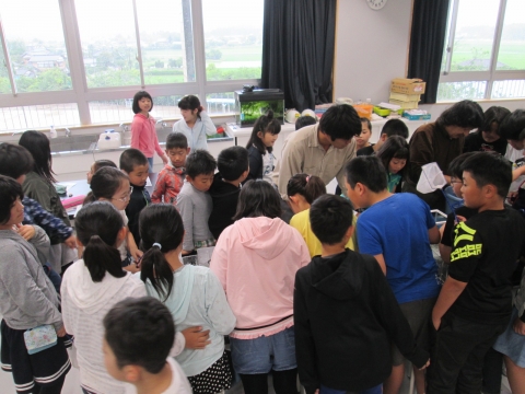 3・4校時に教育ファーム事業で,5年生が田んぼの生き物について学習しました。